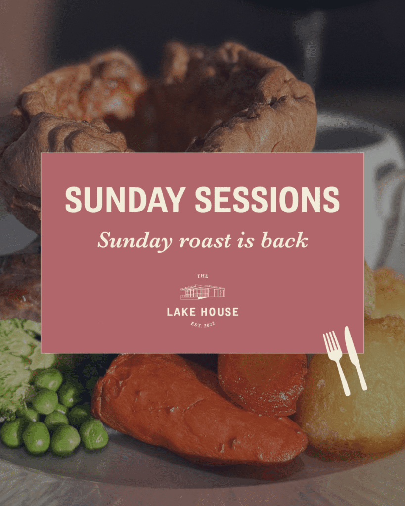 Sunday roasts at the Lake House are back! Including a live singer 3-5pm. Sunday roast menu 1-7pm.